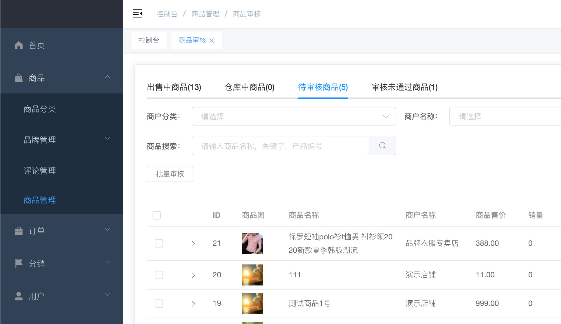 利用品牌入驻、商城自主品牌价值,吸引更多商户入驻强大的平台管理后台